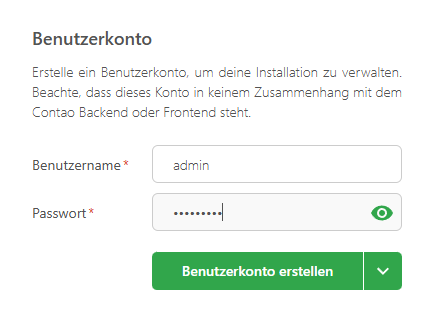 Jetzt den Benutzer-Account für das Contao-Backend einrichten: