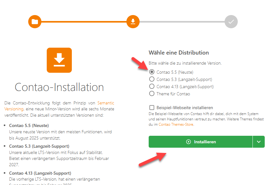 Contao kann mit und ohne Hilfe des App-Installers installiert werden. Wir empfehlen den App-Installer, der automatisch den richtigen Webroot-Ordner einstellt und proc_open aktiviert.