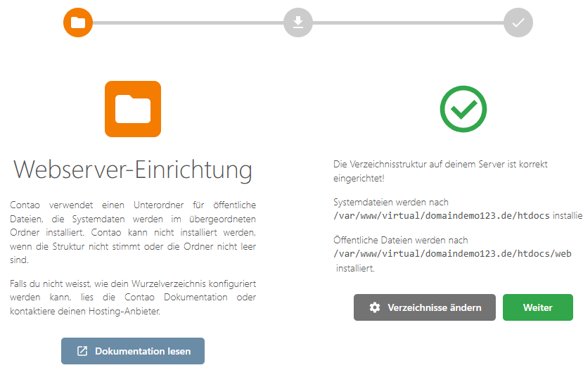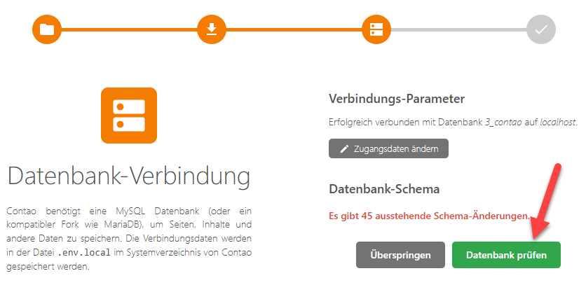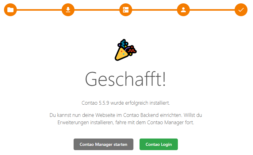 Die nächsten Schritte werden im Contao-Manager erklärt - siehe weiter unten.