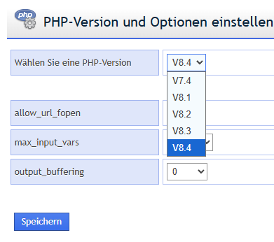 Wichtig: Ab dem 18.05.2026 ist ein Umschalten im Control-Center auf PHP 7.4 nicht mehr möglich – auch dann nicht, wenn der Extended Support gebucht ist. Eine Umschaltung auf PHP 7.4 kann ab diesem Zeitpunkt ausschließlich durch unseren Support erfolgen. Testumschaltungen (Hin- und Rückwechsel) sind damit durch den Kunden selbst nicht mehr möglich.